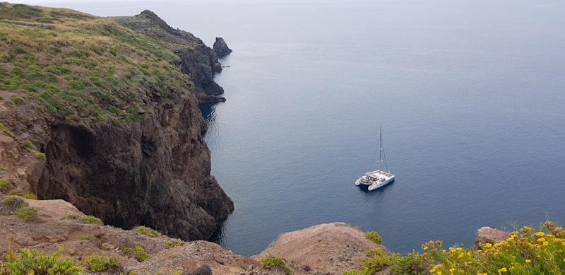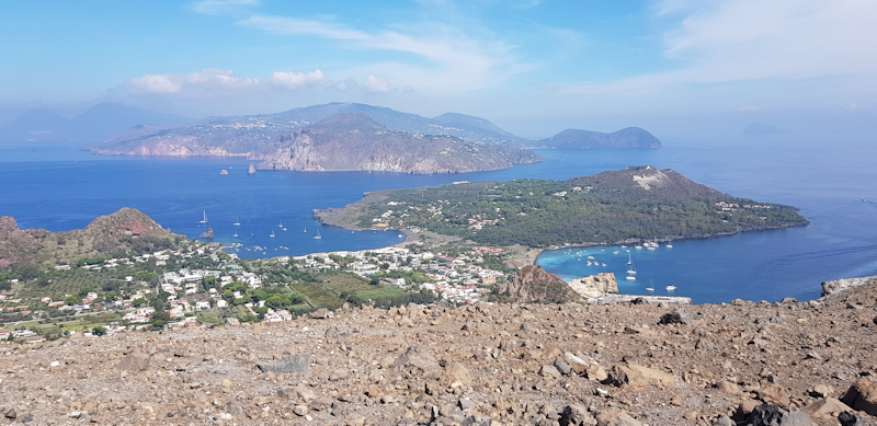 After the walk and a few beers we got on the boat and headed for Lipari island to the north. Here we arrive at the port of Lipari township.