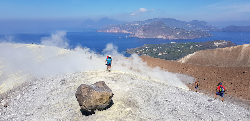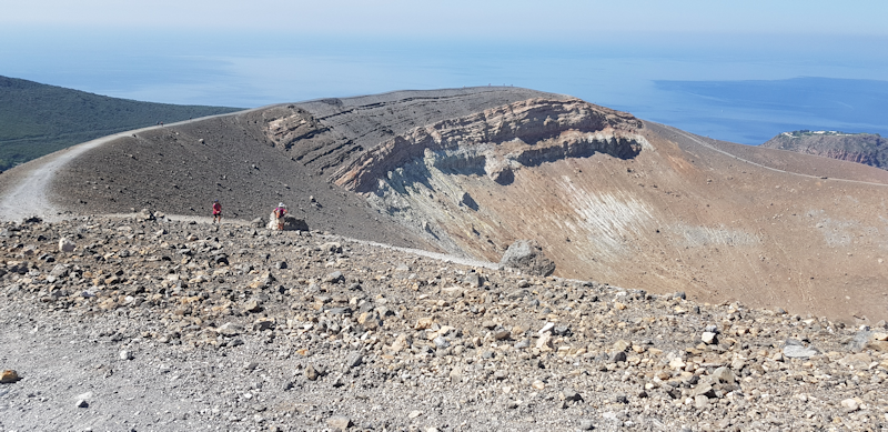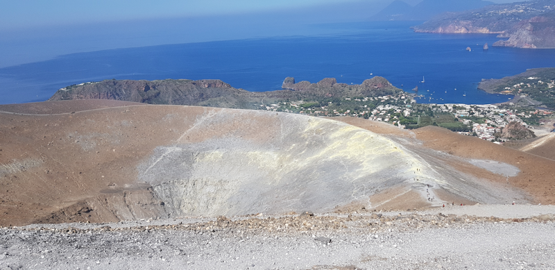 Further ascent takes us above the rim of the Gran Cratere, the area of yellow sulphur deposits can be clearly seen.