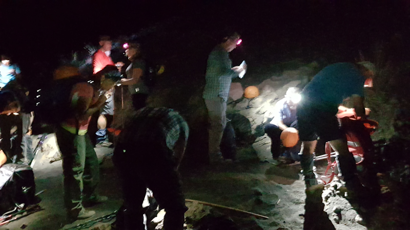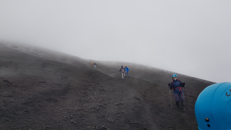 Around 8:20 pm and we've been descending briskly down the ash fields in the dark in a column.