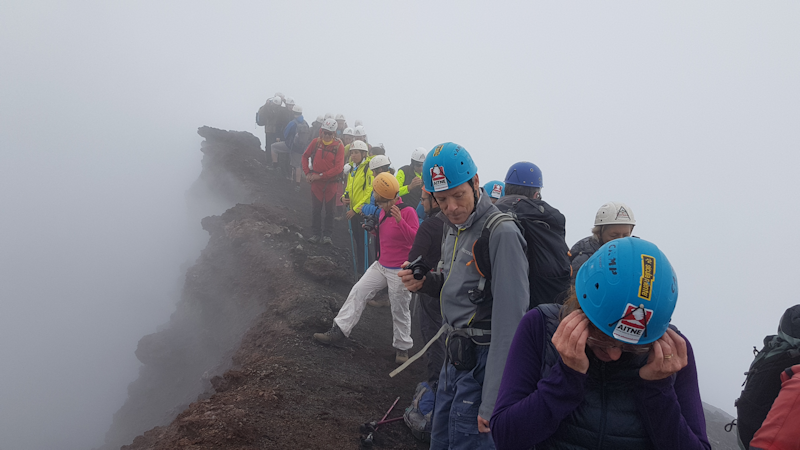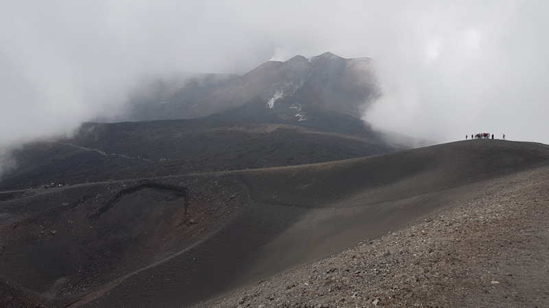 An atmospheric shot of some of the guided visitors standing at the rim of the crater.