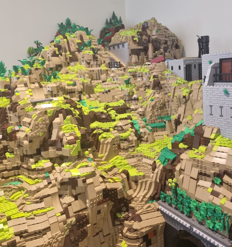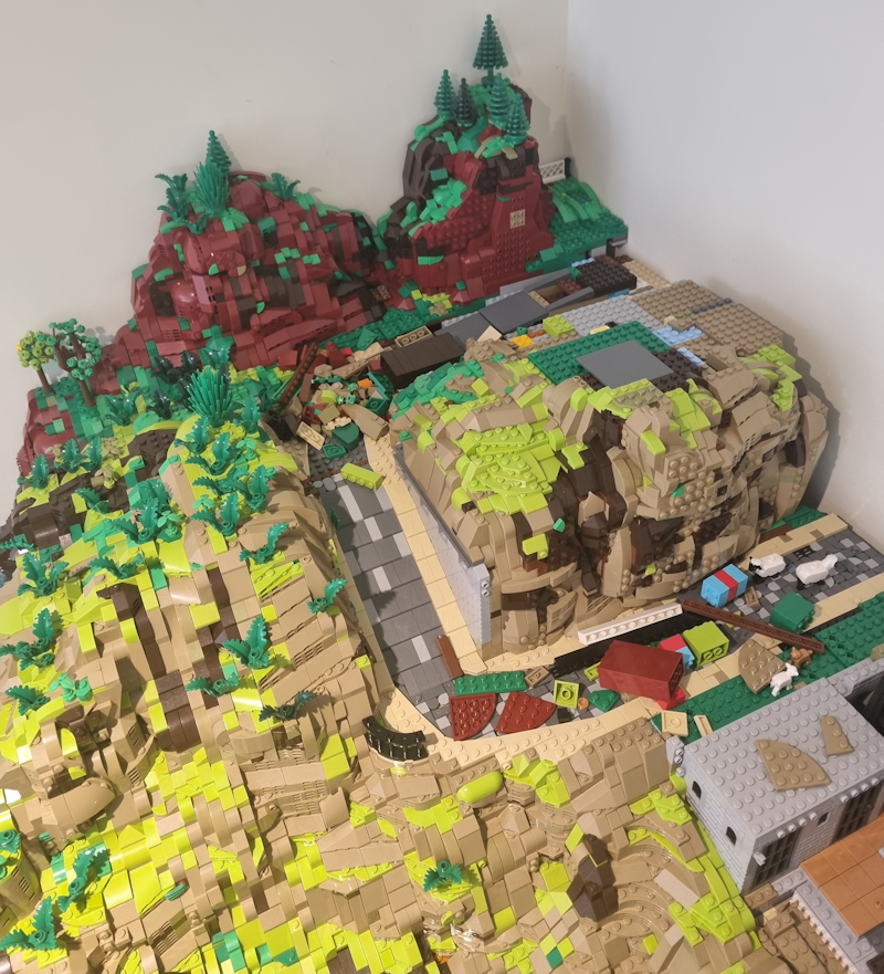 There are tens of thousands of bricks involved, many of them dark red and earth green ones forming the rocky cliffs, hills and valleys.