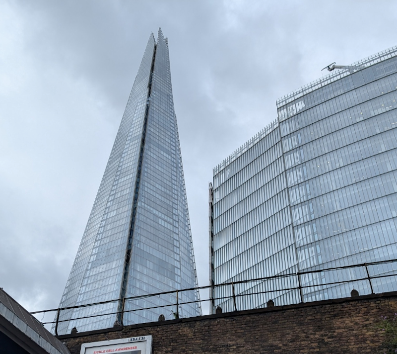 Day 2 (Wednesday 27 August) This was our full day to explore the sights of London. Part 1 was on the hop on and off open top bus between The Strand and Westminster. We passed St Pauls Cathedral and then came a view of the Shard as in this photo. |