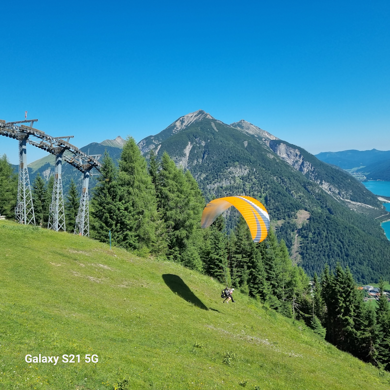 The craft with their pilots were regularly descending from up here and landing in grassy fields in and around Pertisau.