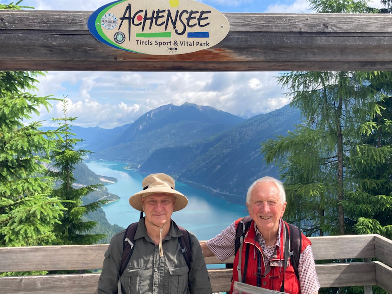 Mary and John posed for a photo at the start of the walk, with Achensee far below.