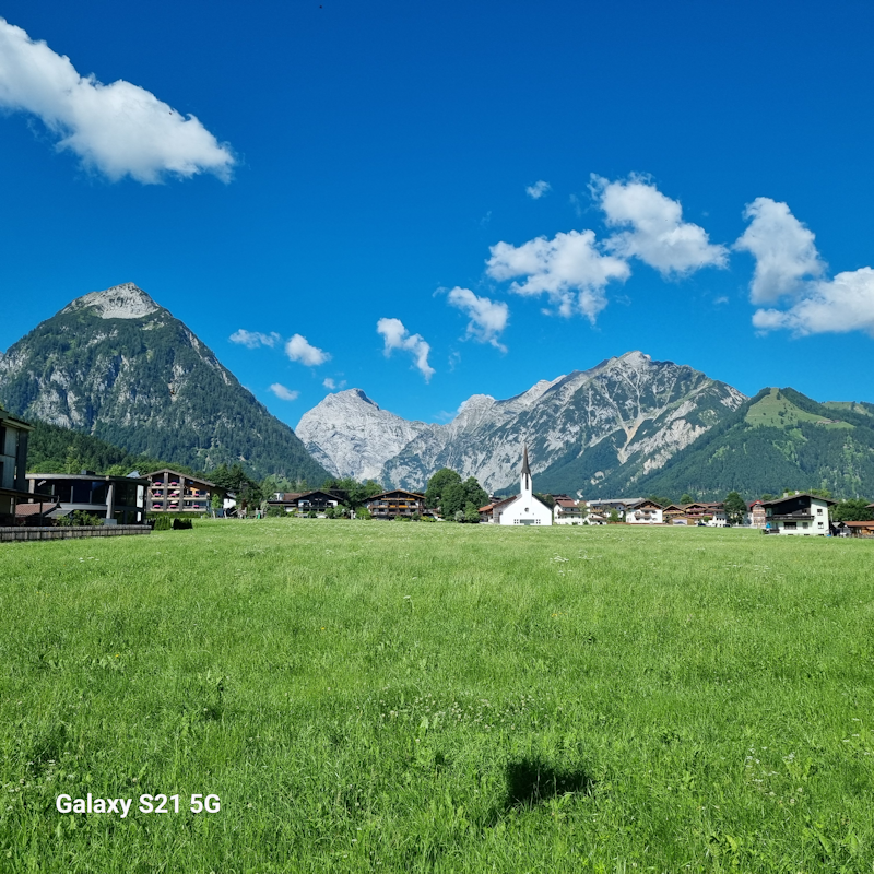 Before the boat trip, I took this picture of Pertisau, with the church and the mountain ranges in the distance.