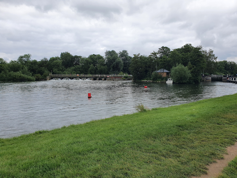 The long bridge at March Lock, which heads right out into the Thames and then back to the bank.