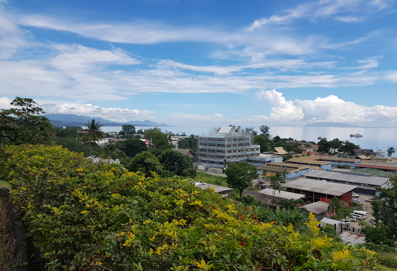 A view of Honiara town centre looking to the west of Point Cruz, with Savo Island on the horizon (about 22 miles to the north west).