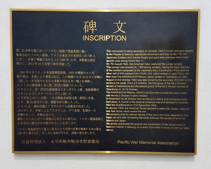 A plaque at the Japanese Peace Park Memorial at Mount Austen.