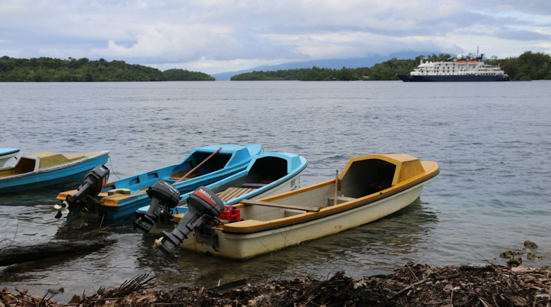 Some boats which are probably owned by villagers. This shot is looking to the west with Vangunu island in the far distance.