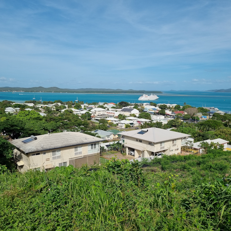 One of the elevated parts of the walk, overlooking the town with our ship in the harbour.