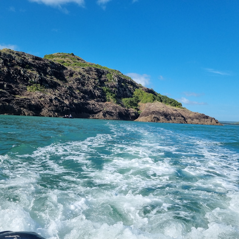 The rip tides between the islands are strong, we found this out on our way back through the gap, where the outboard