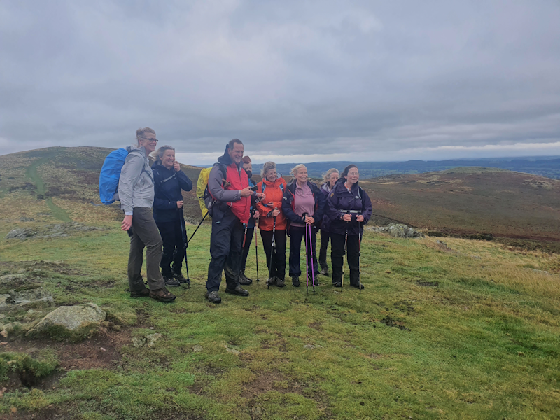 A picture at Gaer Stone before we begin our steep descent towards Church Stretton. In the town some of us went to a cafe for a refreshments before returning to Longmynd House. |