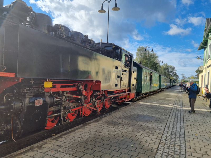 Day 3 (Sunday 13th October) Our main activity today was a visit to Moritzburg Schloss, a leisure palace used by the former kings of Brandenburg. There was also a nice train ride on a narrow gauge heritage railway from Radebeul to Moritzburg. I took this series of 4 photos at Moritzburg station. |