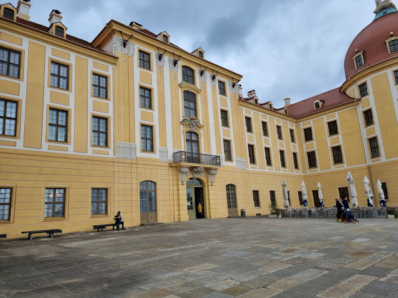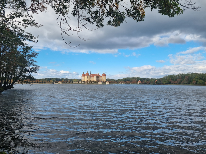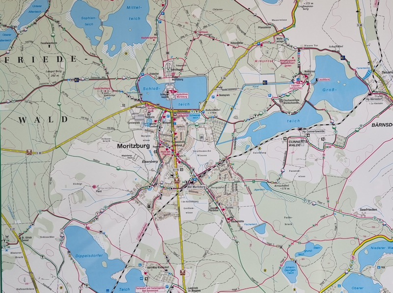 I took a photo of the board which displays the local geography. The Schloss is built on an island in a small lake north of the town of Moritzburg. |