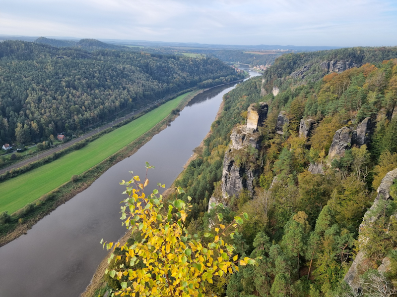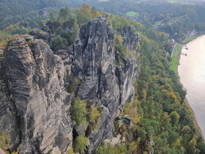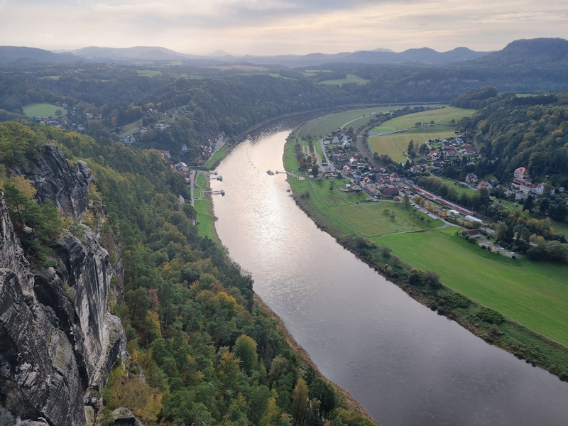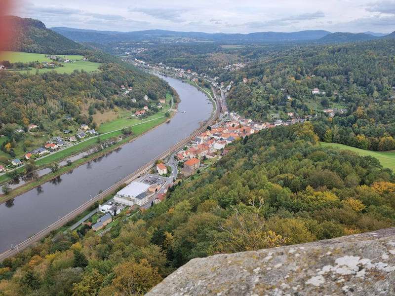 Looking down to the village of Rathen, which has a ferry across to the railway, which we will make use of later when we head to the fortress for Part 2.