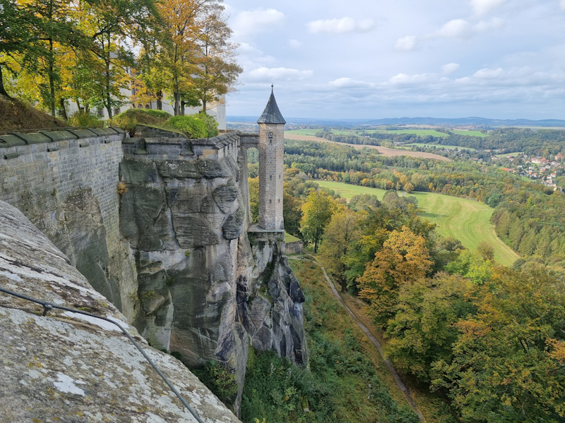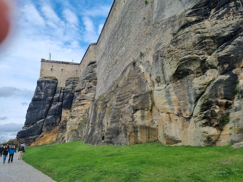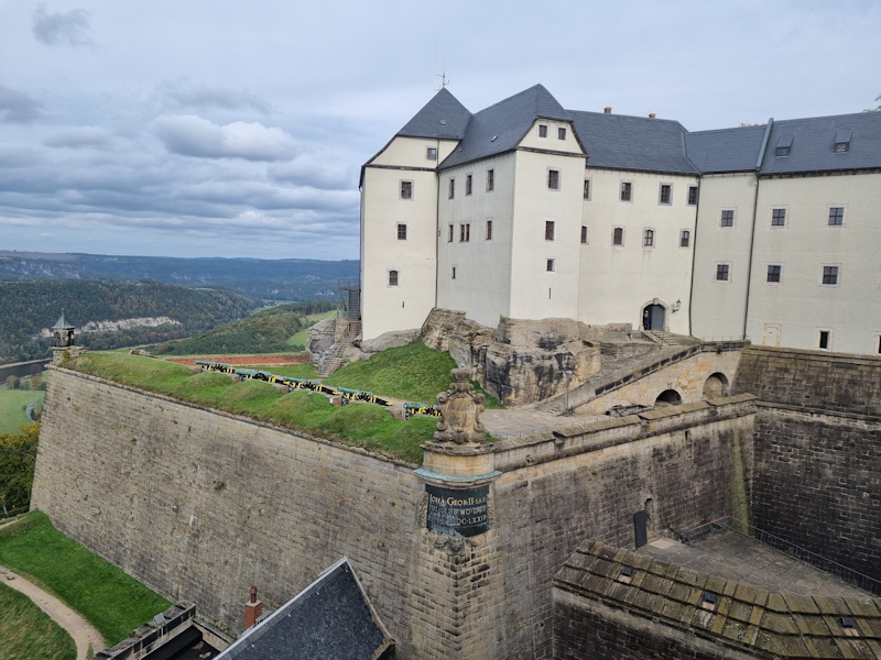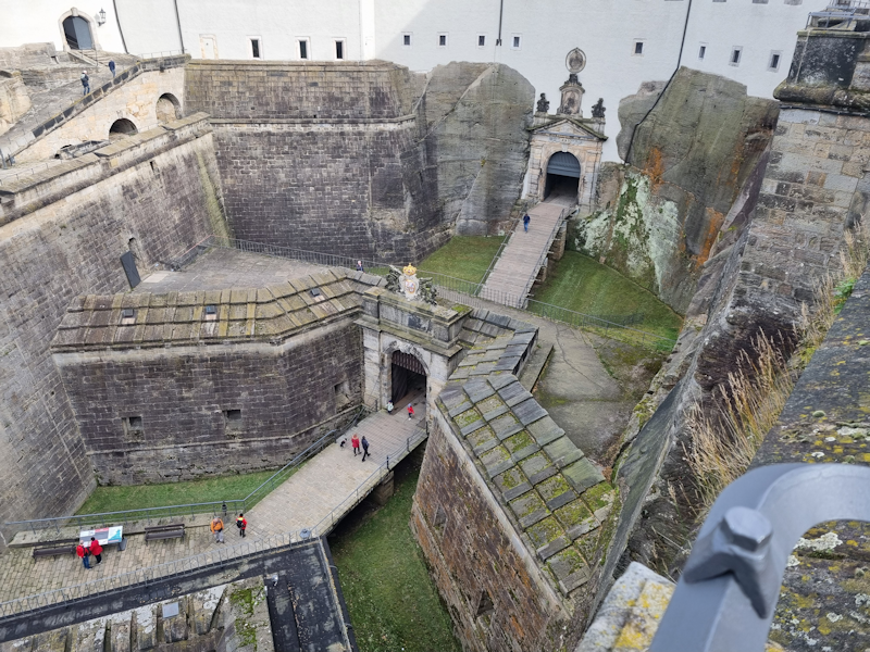 Here begins the second part of the day's exploration. We took a short train journey to Königstein, and then a 45 minute climb on foot (in parts it was steep) to a huge fortress. It is one of the largest hilltop fortifications in Europe and is built on a hilltop plateau. This view from Festung Königstein looks down on the nearby town with the same name. |