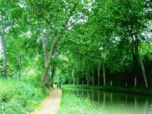 (10) The final walk along the Midi canal back to our hotel in Carcassonne. The two people in the picture are in fact me and Annie, the leader. |
