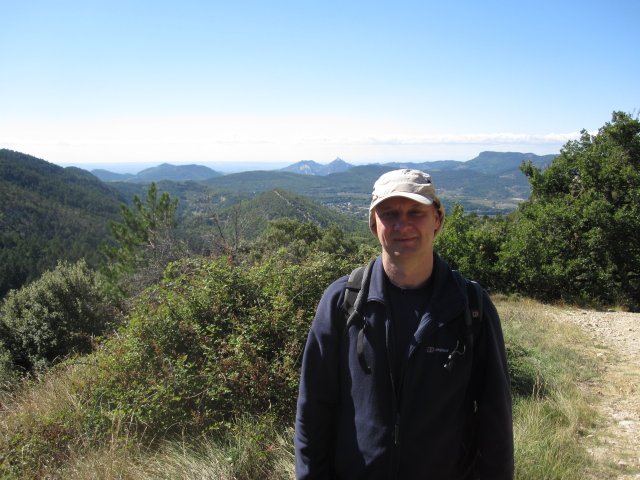 | (1) C'est moi, climbing the lower slopess of Mount Ventoux, scene of a famous 21 km long climb of the Tour De France, from Malaucène (Day 1) | ![]() |