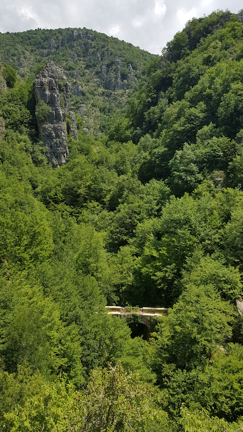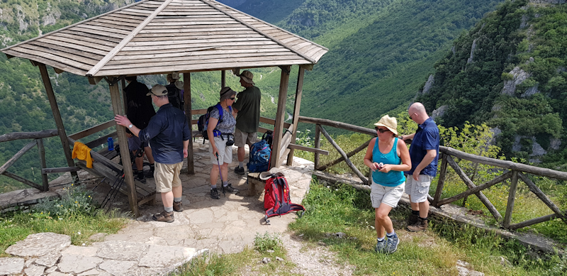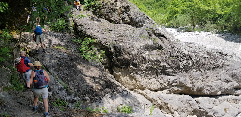 18. Wednesday 13 June. A walk along Vikos Gorge, one of the deepest gorges in the world The start of today's 9 and a half mile walk is a long descent from Monodendri village to the bottom of the valley. Here we pass through vegetation and trees as we descend. |