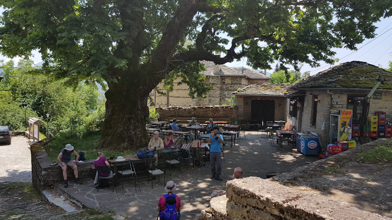 | 11. We had lunch at the village of Koukouli, with its 200 year old plane tree. Ice creams were on sale and there was a chance to refill our water bottles. | ![]() |