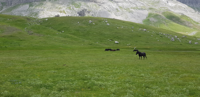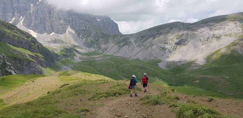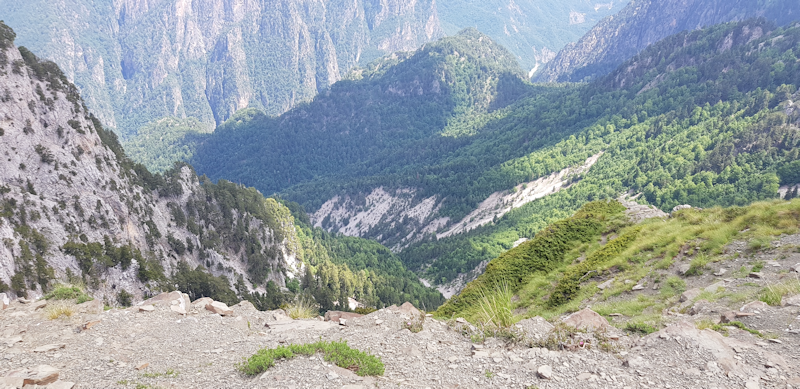 30. Thursday 14 June. A long day, with an ascent to a mountain refuge (where we will stay the night) and then a walk up to the enchanting Dragon Lake Looking down towards Mikro Papingo from where we started today's long ascent. |