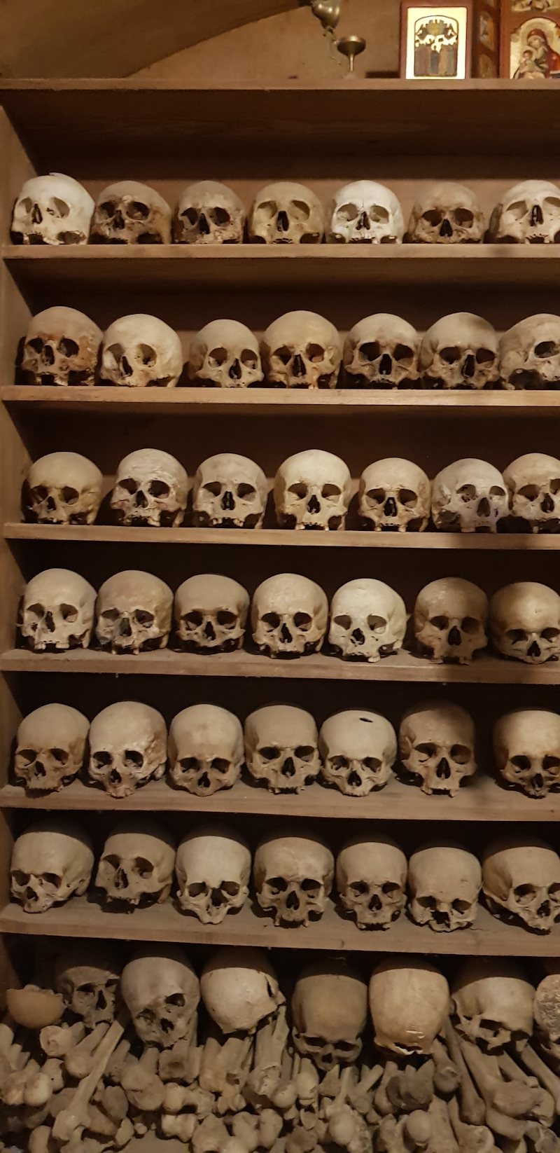 | 47. We visited the biggest of the surviving monasteries, here in a side room are stored skulls and bones of previous inhabitants (probably monks). | ![]() |