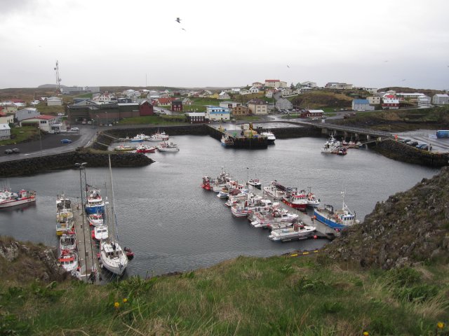 (4) The harbour at the small town of Stykkisholmur. This is the most northerly point I reached - above latitude 65° North - 100 miles south of the Arctic Circle. (Day 2) |