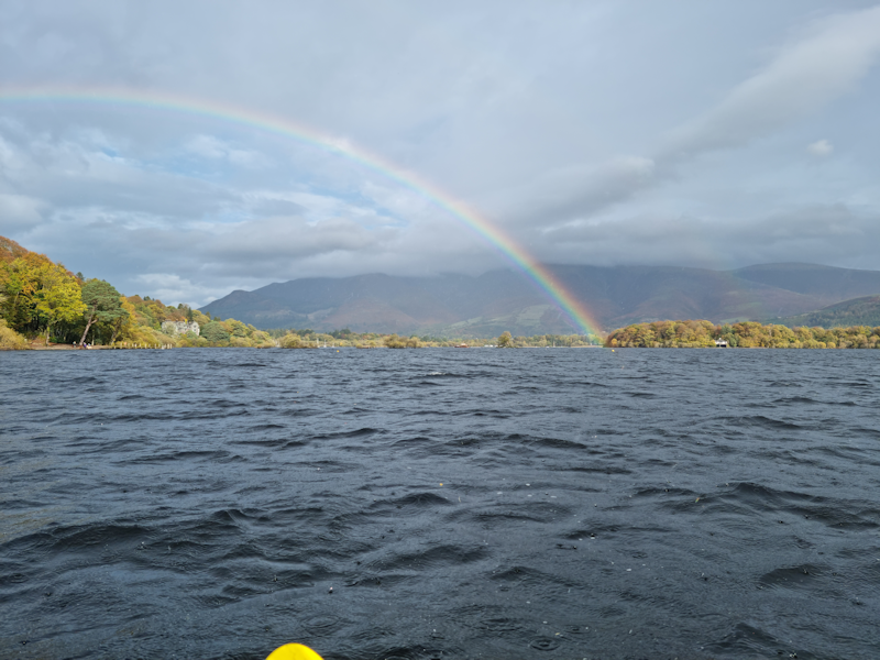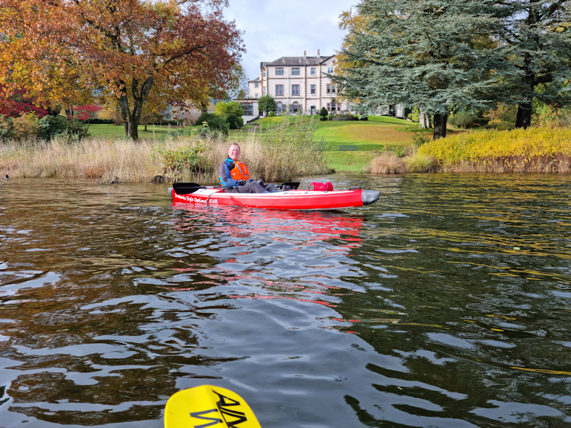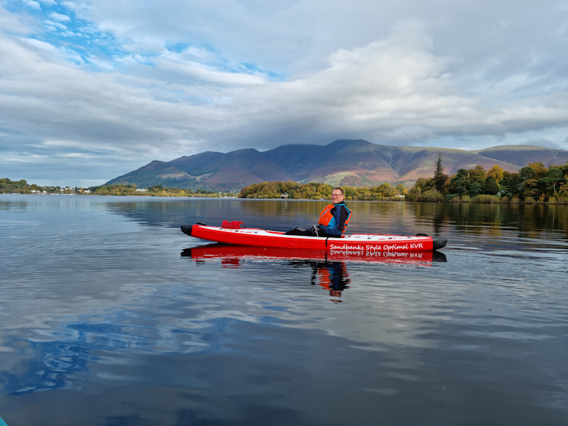 Kayaking with Graham on Derwent Water (Friday 21 October) I had arraged to do some kayaking from Nichol End Marine today. I hired a sit-on and Graham had an inflatable which was trying out for the first time. We paddled for about 3 miles around a couple of islands before it started getting a bit choppy. Initially the water was like a mirror, perfect conditions. |