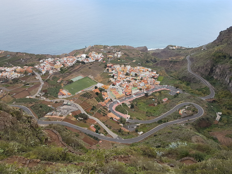 [1: 30 Jan] I forgot to take my phone for yesterday's walk but here on Day 2 we started the walk by ascending the cliff above the village of Agulo. From high up we look down on Agulo after a steep and steady climb. |
