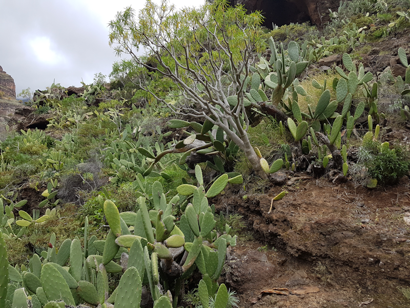 [15: 2 Feb] A feature of La Gomera is the presence of desert plants such as giant yukkas and cactii such as prickly pear in the lower, more arid parts of the island. |