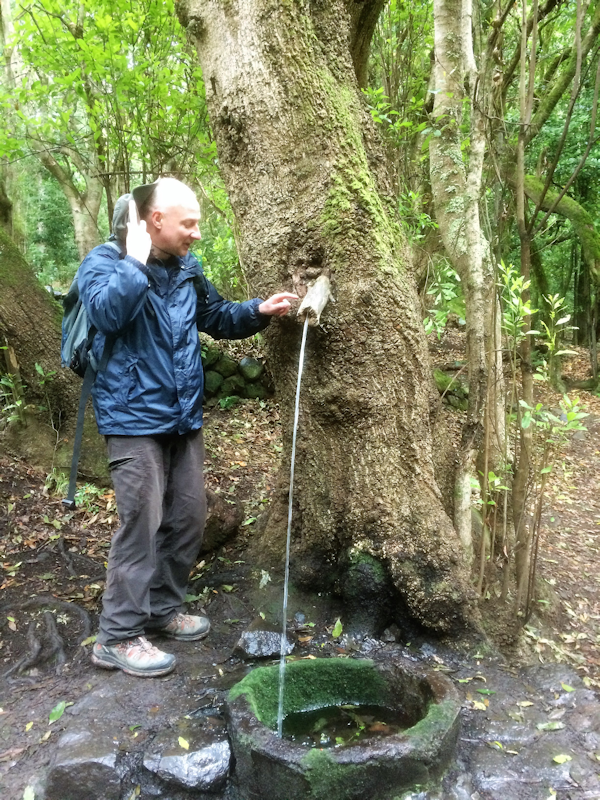 [6: 31 Jan] At the same venue, I examine a spring emerging from a living tree. There is actually a pipe embedded in there but I've no idea how it was engineered! |