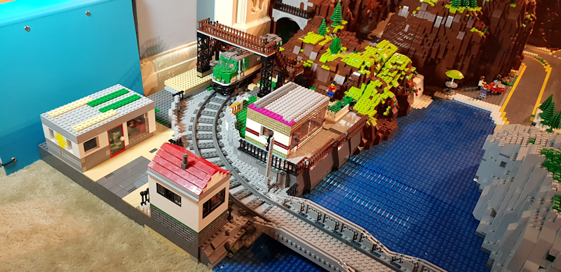 15th March The mountain continues to rise, brick by brick. The railway station building is complete and the original separate snack bar has been merged into the main building. The roof is complete and uses red tiles. The station will be changed in the future, I'm always looking for improvements. |