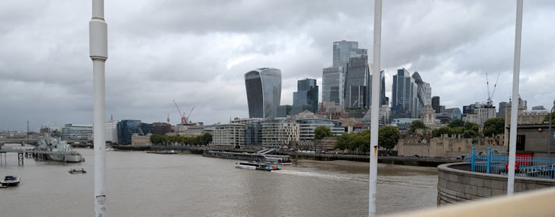 | Crossing Tower Bridge, with some of the skyscrapers in the scene, including the 'walkie talkie'. | ![]() |