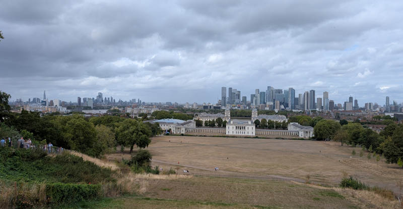 | This classic view, which I've seen before is from the hill at the Greenwich Observatory with Canary Wharf's skyscrapers to the right and central London on the left. | ![]() |
