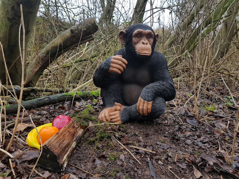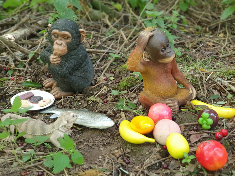 7. One of the new apes is a baby Orang-Utan called Jinja, whose pal Bobo is nearby. There is more food available, including biscuits and a fish. |