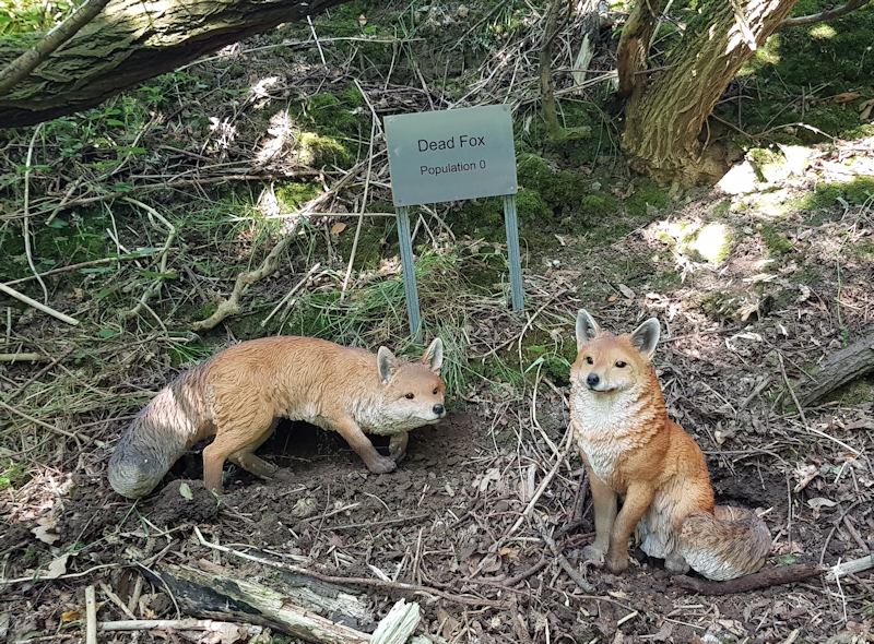 6. The two foxes which lived at 'Dead Fox', a place in the dyke near the end of the land, where I had once found a dead fox. Sadly, both the foxes were stolen in 2019, probably by poachers trespassing on my land. I have already got replacements for these two, which should shortly appear at Dead Fox. |