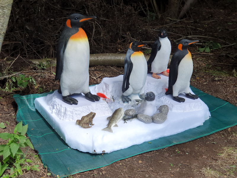 8. Another group of animals I added today is this squadron of 5 penguins on an ice sheet, along with a supply of fish. Three of them are King penguins, one is an Adelie and the chick is probably an Emperor. I've no idea why the frog is there, but I know there is a species which can hibernate under the snow in sub-zero temperatures. Alternately this frog may have a regular supply of hot soup somewhere and a four-season sleeping bag. |