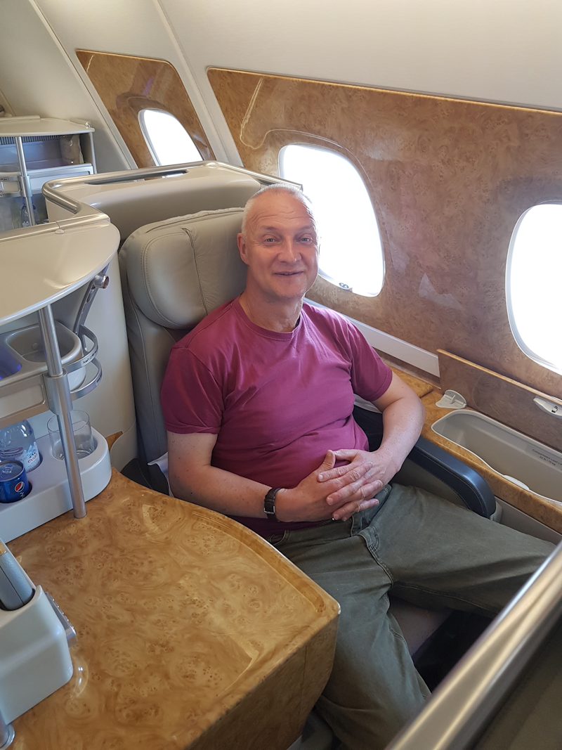 We three departed on the Sunday aboard an Emirates A380-800 Airbus. What's more I upgraded us to Business Class as a treat. First time on the world's biggest airliner and first time ever I'm not flying in bog-standard class. Tick a few more boxes! |