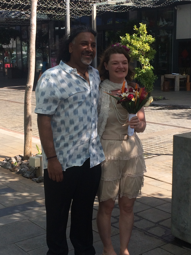 Jeet carries out the ceremony with speeches by the bride and groom, vows and exchange of rings. This took place at Balaclava beach, south of Grand Bay. |