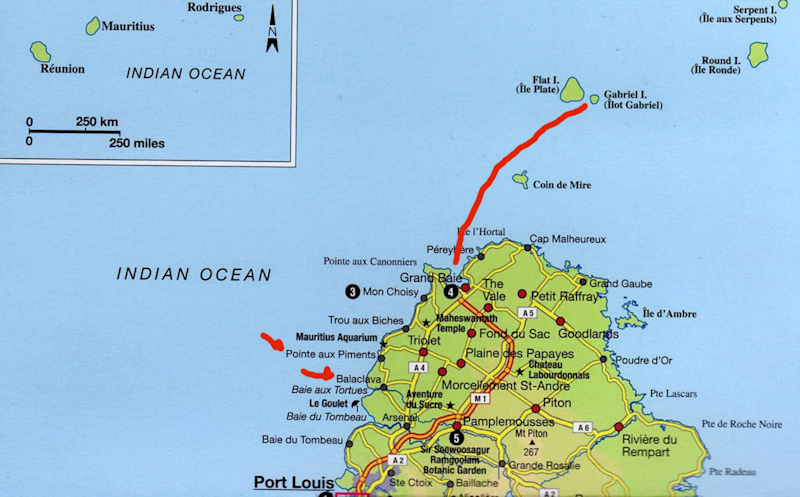 Wedding venues in north Mauritius Get together in Grand Baie, beach wedding at Balaclava public beach followed by boat trip from Grand Baie to Ilot Gabriel (see red line), close family wedding meal near Pamplemousses, Hindu wedding at Pointe aux Piments, Registry ceremonies within La Croisette shopping centre near Grand Baie. |