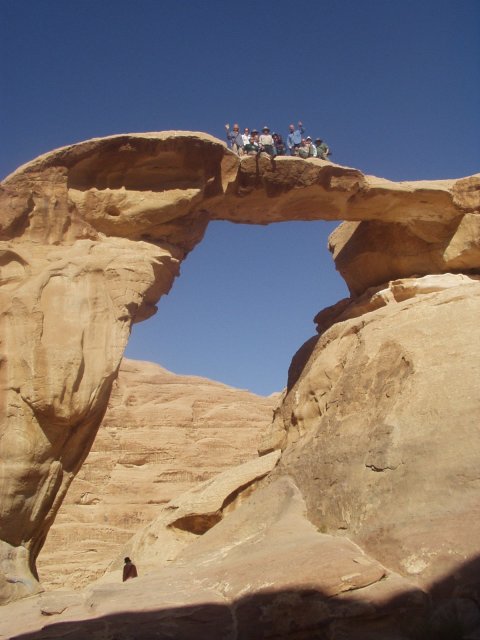 (17) Wadi Rum, the natural bridge - a group of us up there.