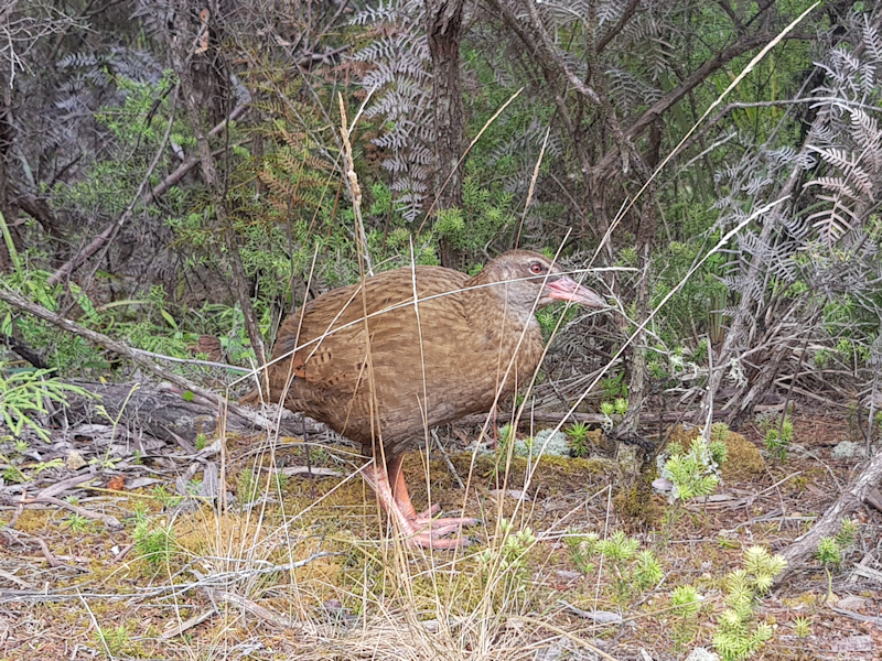 A weka, one of New Zealand's flightless birds. I saw a few of them during the trip, they would appear out of the bush looking for food, sometimes in car parks where they expected to find a few titbits. They are about the size of a small hen but apparently pretty aggressive with their beak!