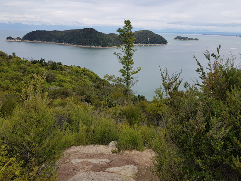 The last leg of our walk took us up to the top of a peninsula, to the south can be seen Adele Island. THe path took us down to Anchorage, where we were eventually picked up by the boat to take us back to Kaiteriteri and our coach.