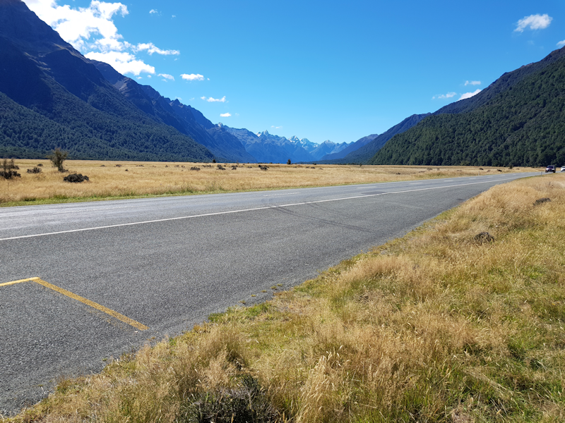 The driver stopped the bus at the roadside on the way back south to Te Anau. This is the Eglinton River valley.