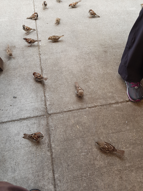We stopped for lunch at Twizer, where our hotel was, and here I fed sausage roll crumbs to a large flock of sparrows.