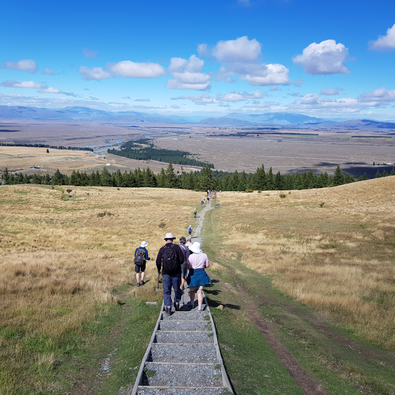 At the southern end of another lake, Tekapo, we stopped and did a walk up the hill at Saint John. It was about 280 metres of climb to the top of this small mountain where there is a functional observatory.
