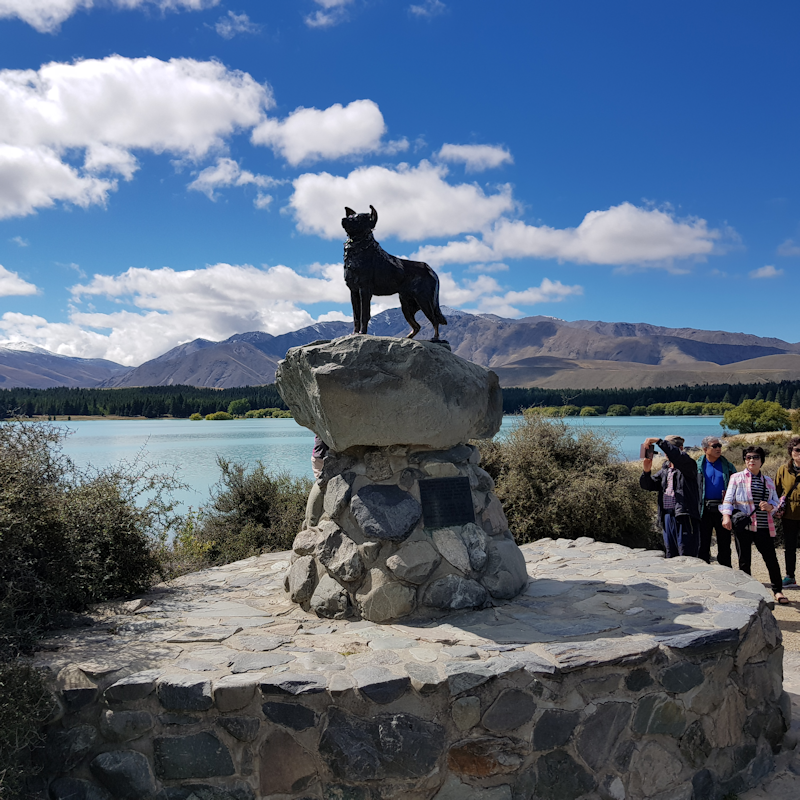 The statue of a sheep dog near the Church of the Good Shepherd, Lake Tekapo.