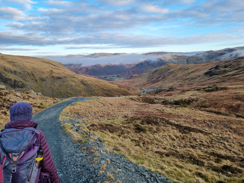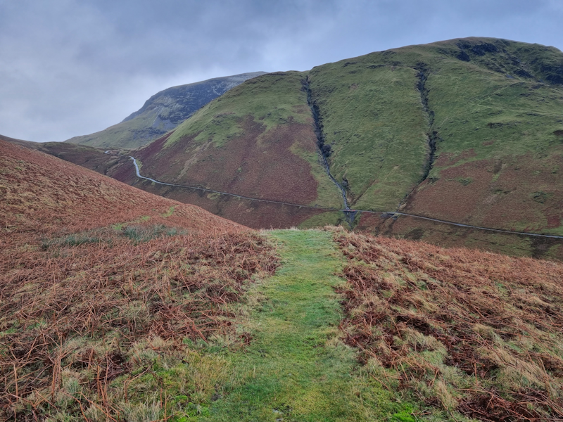 The climb up Puddingstone Bank heading up from Rosthwaite towards Watendlath.