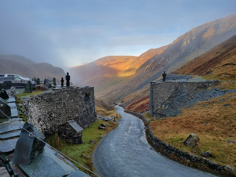 Although the website advised a different route, I just followed the Satnav in my A5 Quattro and enjoyed the ride along this mainly single lane road with passing places and some very steep bits.