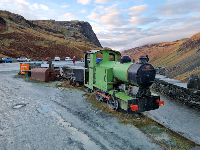 The little steam locomotive on display at Honister Slate Mine.
